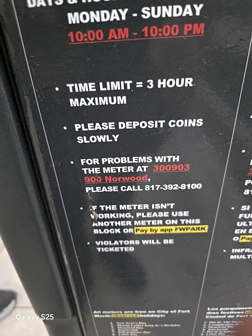 964 Norwood St, Fort WorthMeter 300903 is off, and not working. 900 Norwood.